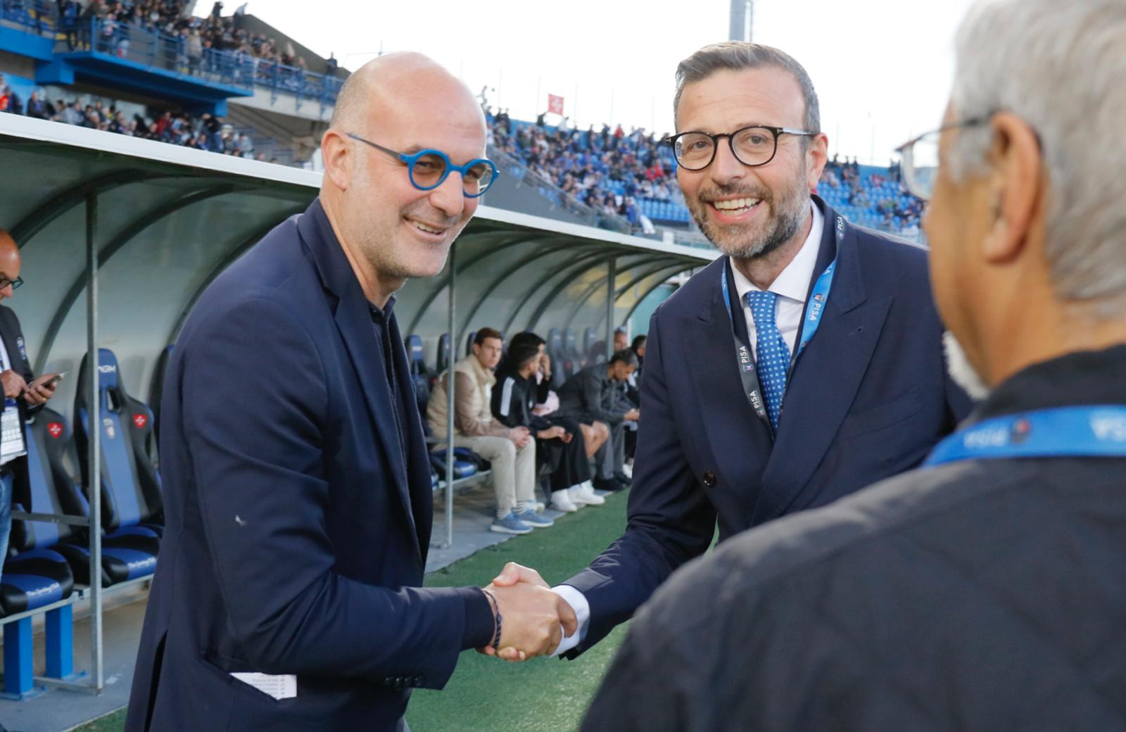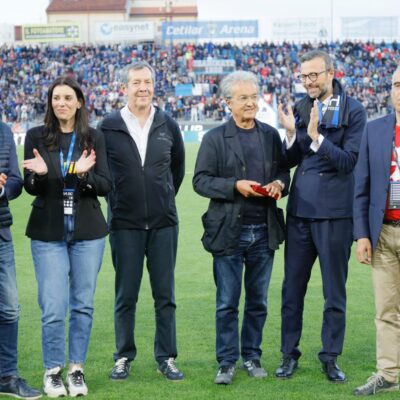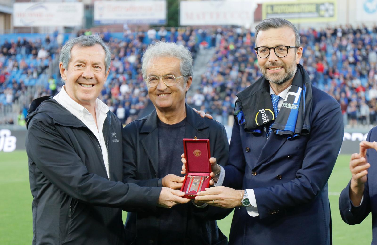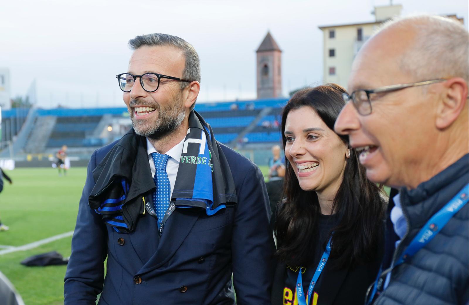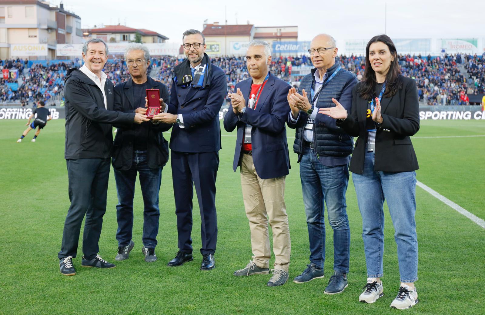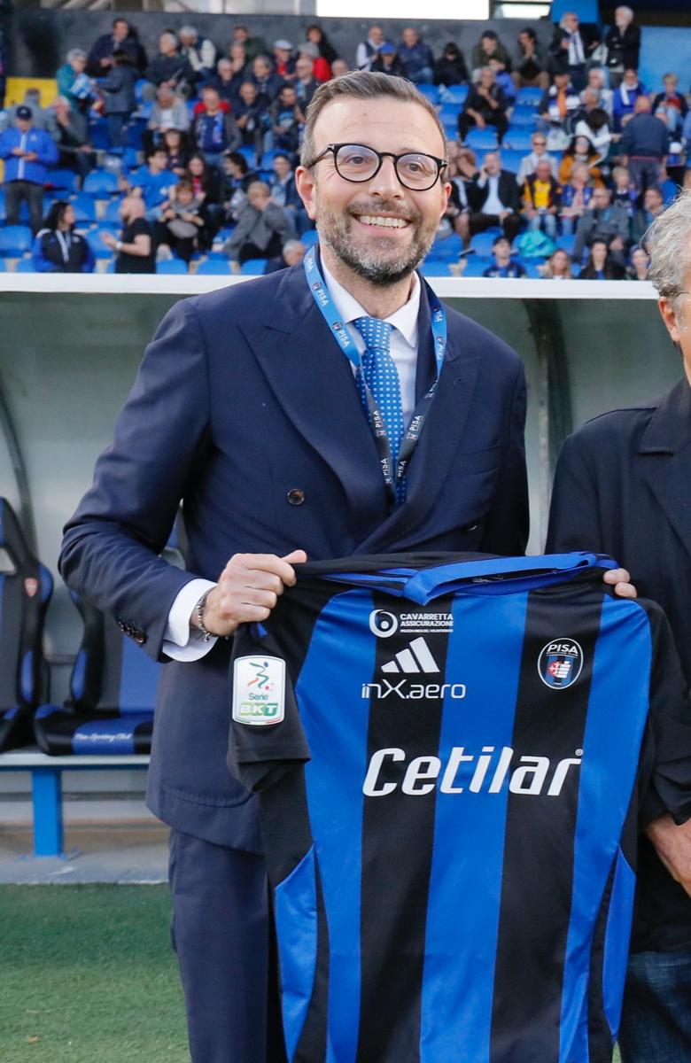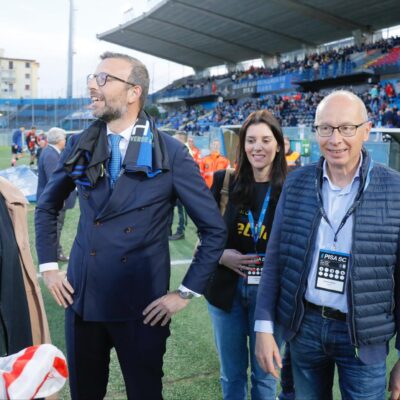 Ieri sera sul campo all’Arena Garibaldi prima del fischio d’inizio della partita con il Südtirol. Mazzeo: “Grande emozione, celebriamo non solo i risultati sportivi, ma soprattutto il lavoro di squadra, la tenacia, la grinta e la capacità di far sognare una comunità intera”. Con il presidente, i consiglieri Pieroni, Meini e Petrucci