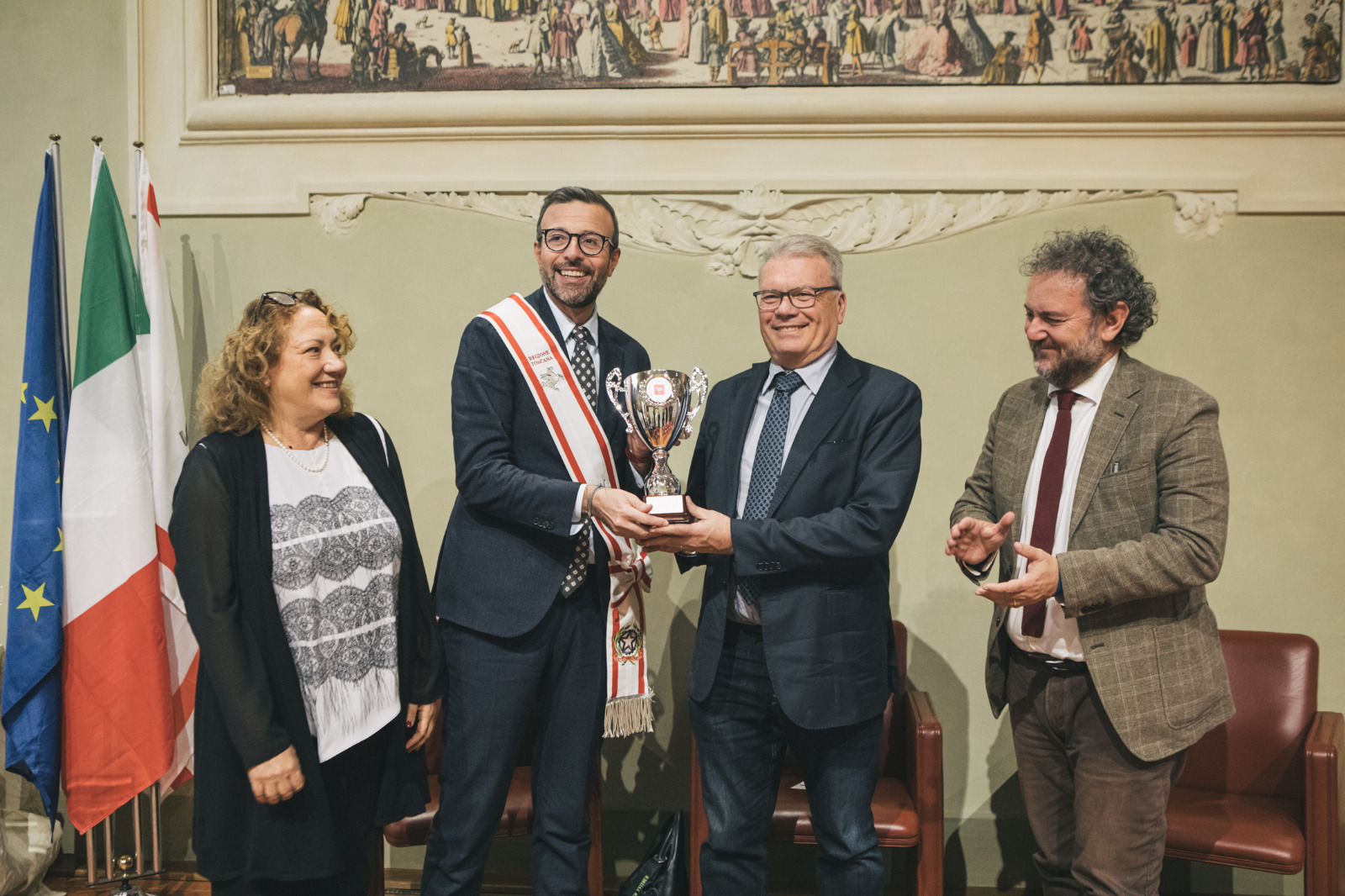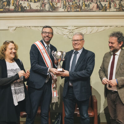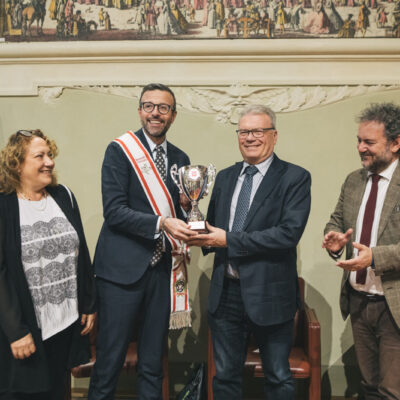 Nella Sala del Gonfalone appena restaurata, il presidente Antonio Mazzeo, insieme a Francesco Gazzetti e Donatella Spadi, ha consegnato il riconoscimento al club vincitore della Supercoppa italiana 2024