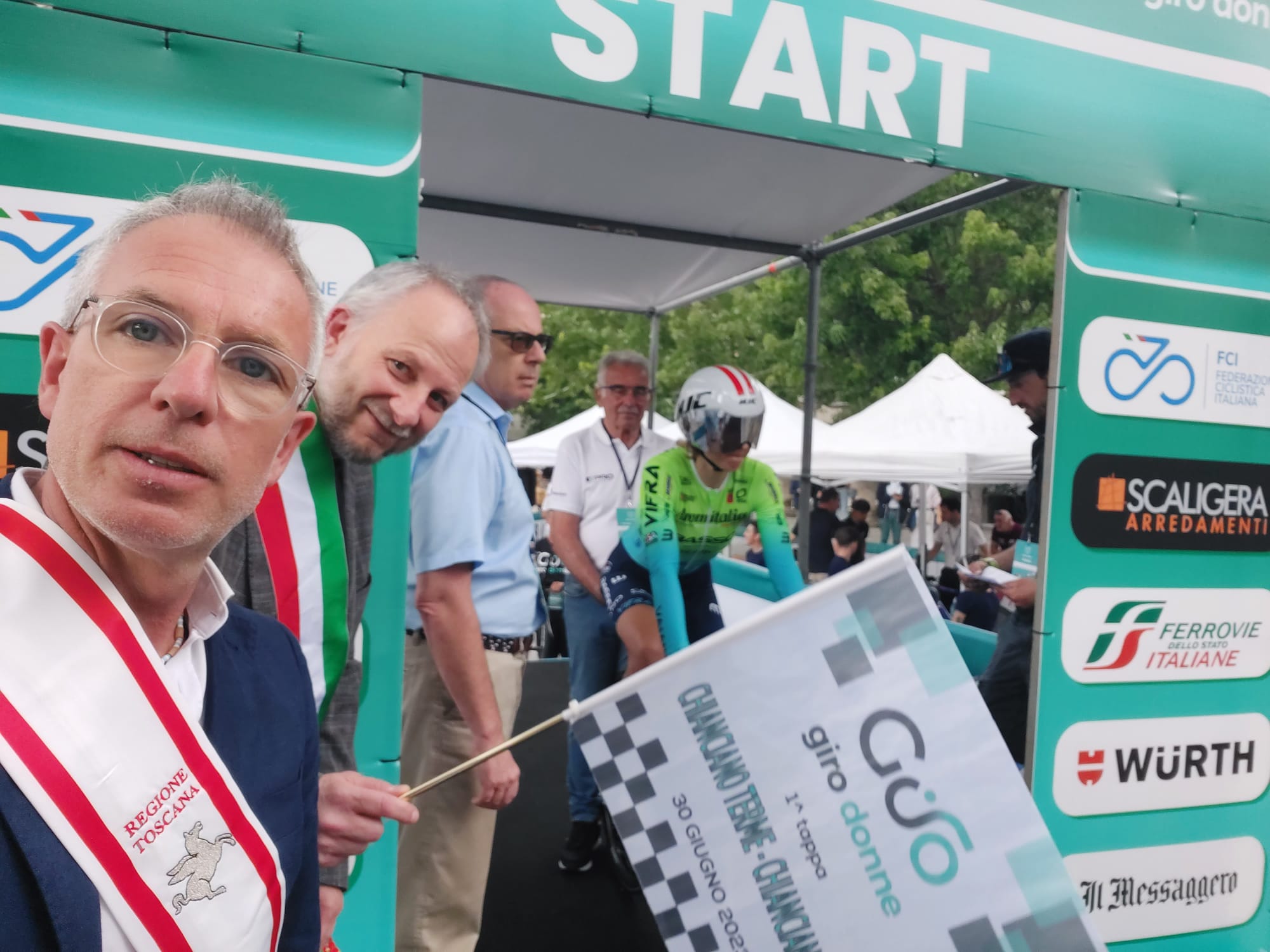“E’ una grande soddisfazione per la Regione Toscana ospitare la partenza del Giro Donne, il ciclismo è sport e vita. Per noi è un’occasione fondamentale non solo per promuovere lo sport ma anche valorizzare e far apprezzare la bellezza del nostro territorio”. Questo il commento del vicepresidente del Consiglio regionale della Toscana, Stefano Scaramelli, sulla prima tappa del Giro Donne. È stato lo stesso vicepresidente a dare il via oggi, venerdì 30 giugno, al crono individuale a Chianciano Terme, insieme al sindaco e a 620 persone impegnate per il Giro. Solo alcuni numeri: 24 team, di cui 15 della categoria Uci Womens’ World Tour, per un totale di più di 160 atlete, si daranno battaglia durante i 9 giorni di gara.