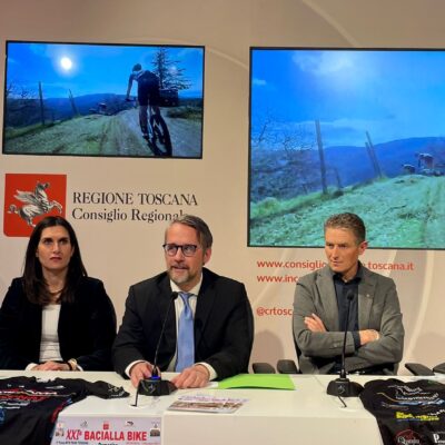 Firenze – Il ricco programma di gare della Bacialla Bike è stato presentato in una conferenza stampa al Media Center Sassoli di palazzo del Pegaso. Cresce l’attesa per la gara ciclistica per mountain bike giunta alla ventunesima edizione che si terrà il prossimo 10 marzo. Sono intervenuti il vicepresidente del consiglio regionale Marco Casucci; l’assessore allo Sport, sanità, trasporti e pubblica istruzione di Cortona Silvia Spensierati; il presidente e il vicepresidente dell’A.S.D. Ciclismo Terontola, rispettivamente Gialuca Fragai e Graziano Neri; il presidente provinciale della FCI (Federazione Ciclistica Italiana) di Arezzo, Antonio Martini.