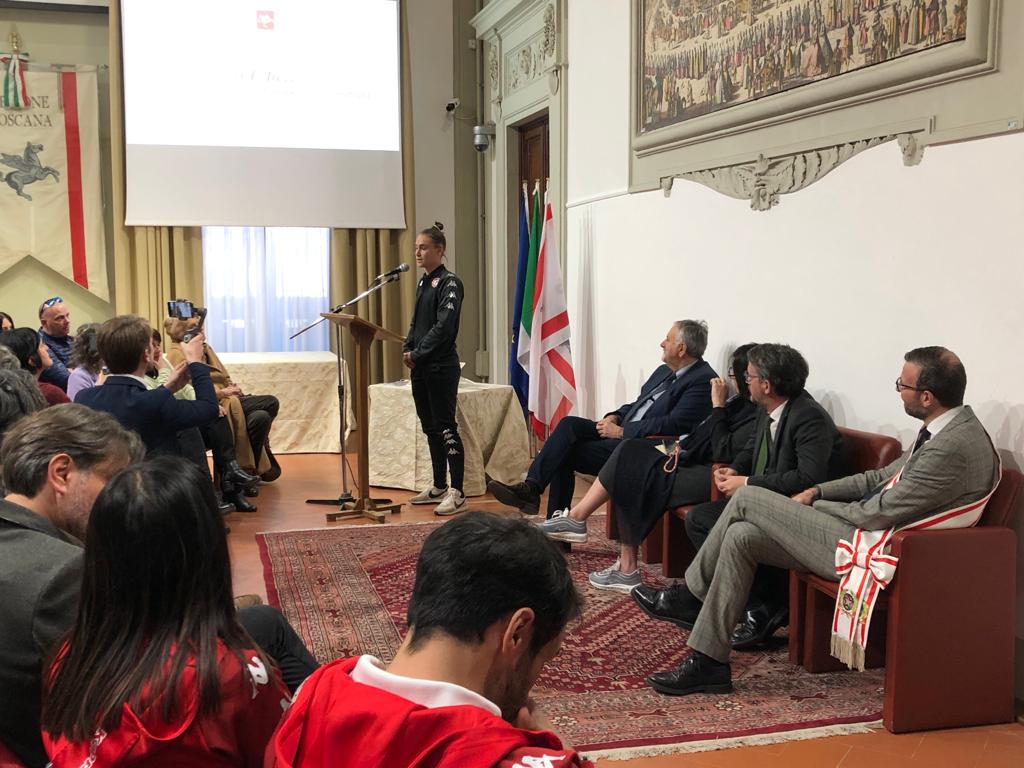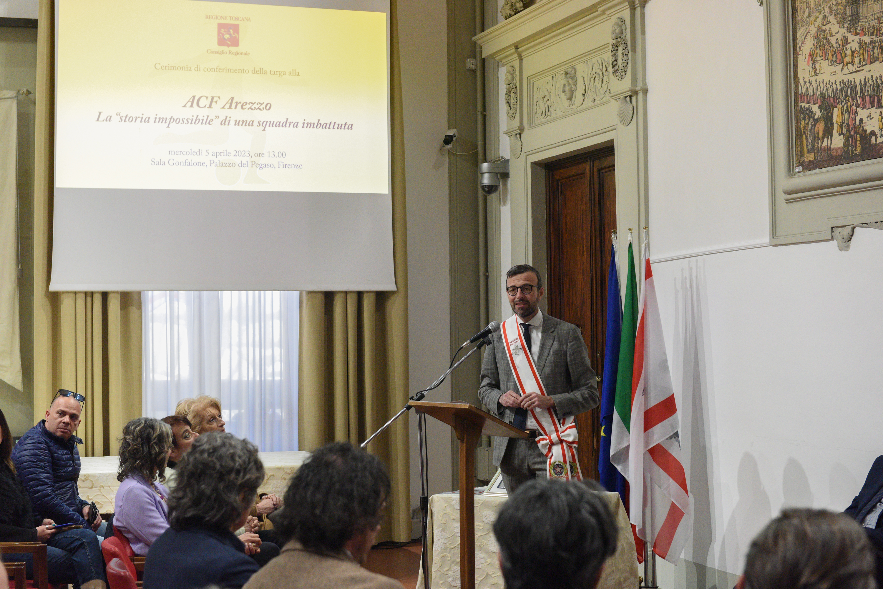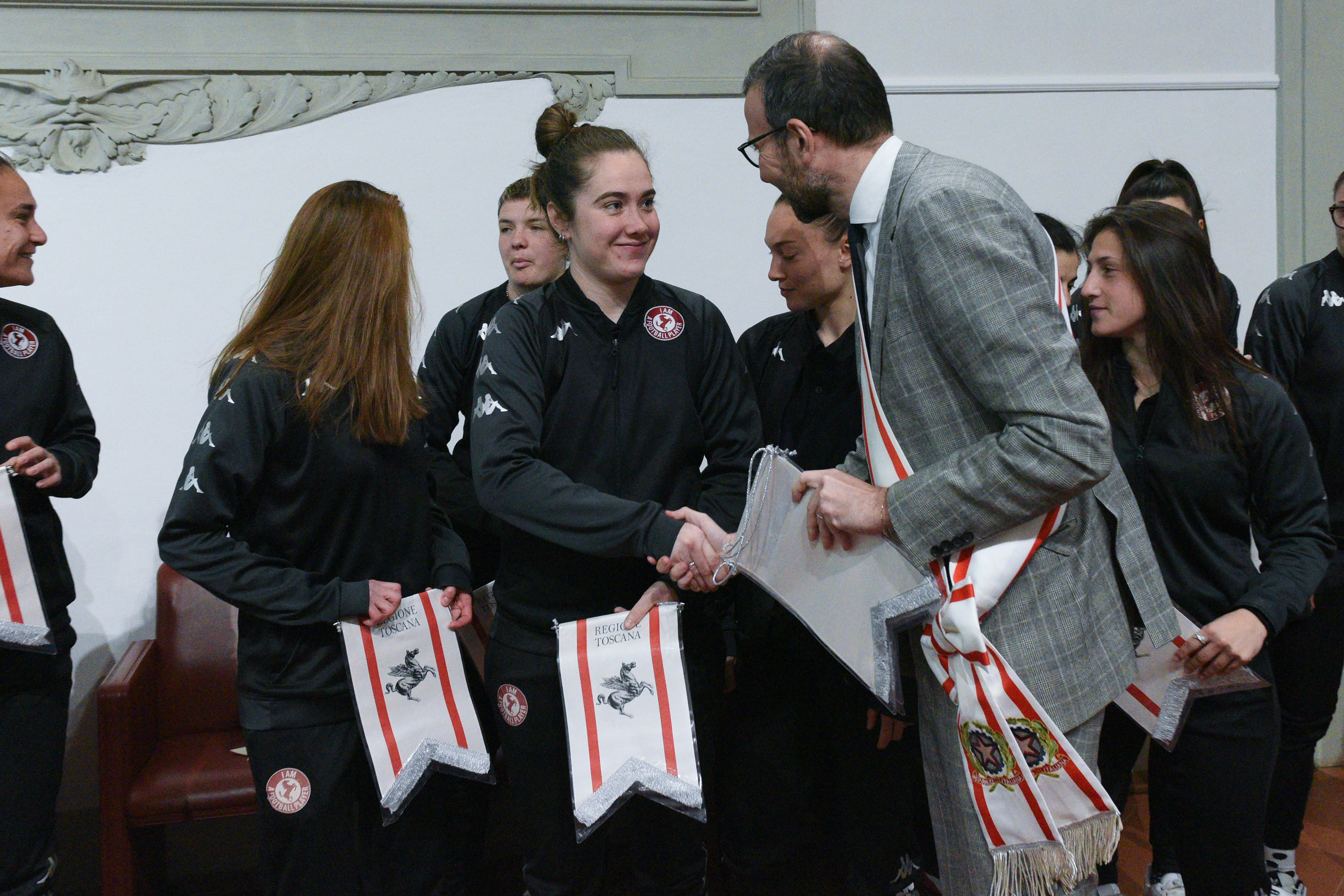 A ricevere la targa dal presidente del Consiglio regionale Mazzeo il presidente dell’Arezzo Calcio Femminile Massimo Anselmi: “Siamo onorati per un riconoscimento che corona quello che abbiamo fatto la scorsa stagione. Avevamo grandi obiettivi e forti ambizioni, ci aspettavano i risultati, ma quello che abbiamo ottenuto, un campionato vinto senza sconfitte, è andato oltre tutte le previsioni”.