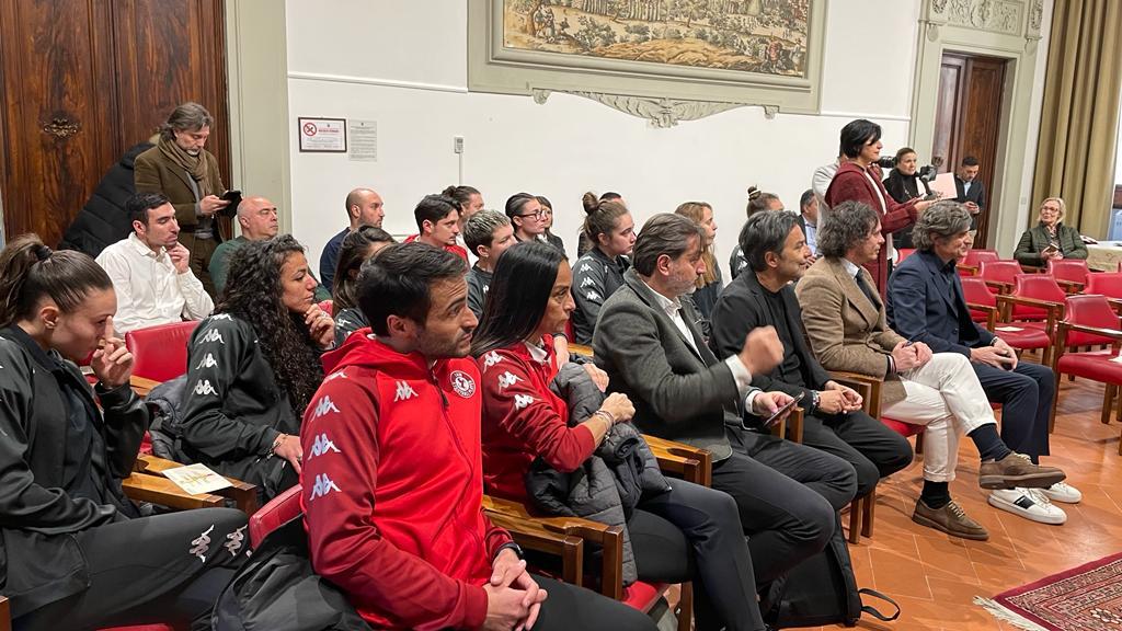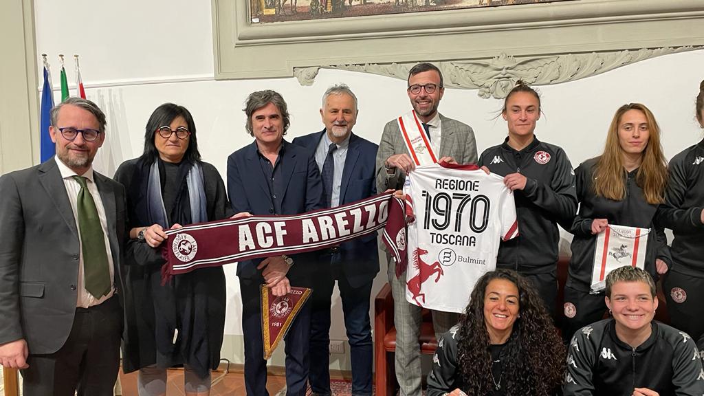 Firenze – Il Consiglio regionale della Toscana ha voluto premiare la squadra ‘imbattibile’ dell’Arezzo Calcio Femminile, che nella stagione 2021-2022 ha vinto il campionato di serie C senza mai perdere una partita, con una targa “per l’impegno profuso nella massima condivisione e crescita dell’intero movimento calcio femminile italiano”. A consegnare il riconoscimento durante la cerimonia, nella sala Gonfalone di palazzo del Pegaso, il presidente dell’Assemblea legislativa. Antonio Mazzeo ha sottolineato il valore sportivo e sociale delle ragazze in maglia amaranto: “Il vostro è un messaggio positivo, questo è un premio all’impegno, alla passione, alle competenze, a chi ci ha creduto e a chi continua a farlo. I risultati della squadra sono stati incredibili. È bello che sia stato realizzato anche un docufilm, un messaggio di speranza che invita a credere nei propri sogni e con l’allenamento, con l’impegno e la passione questi sogni si possono realizzare”.