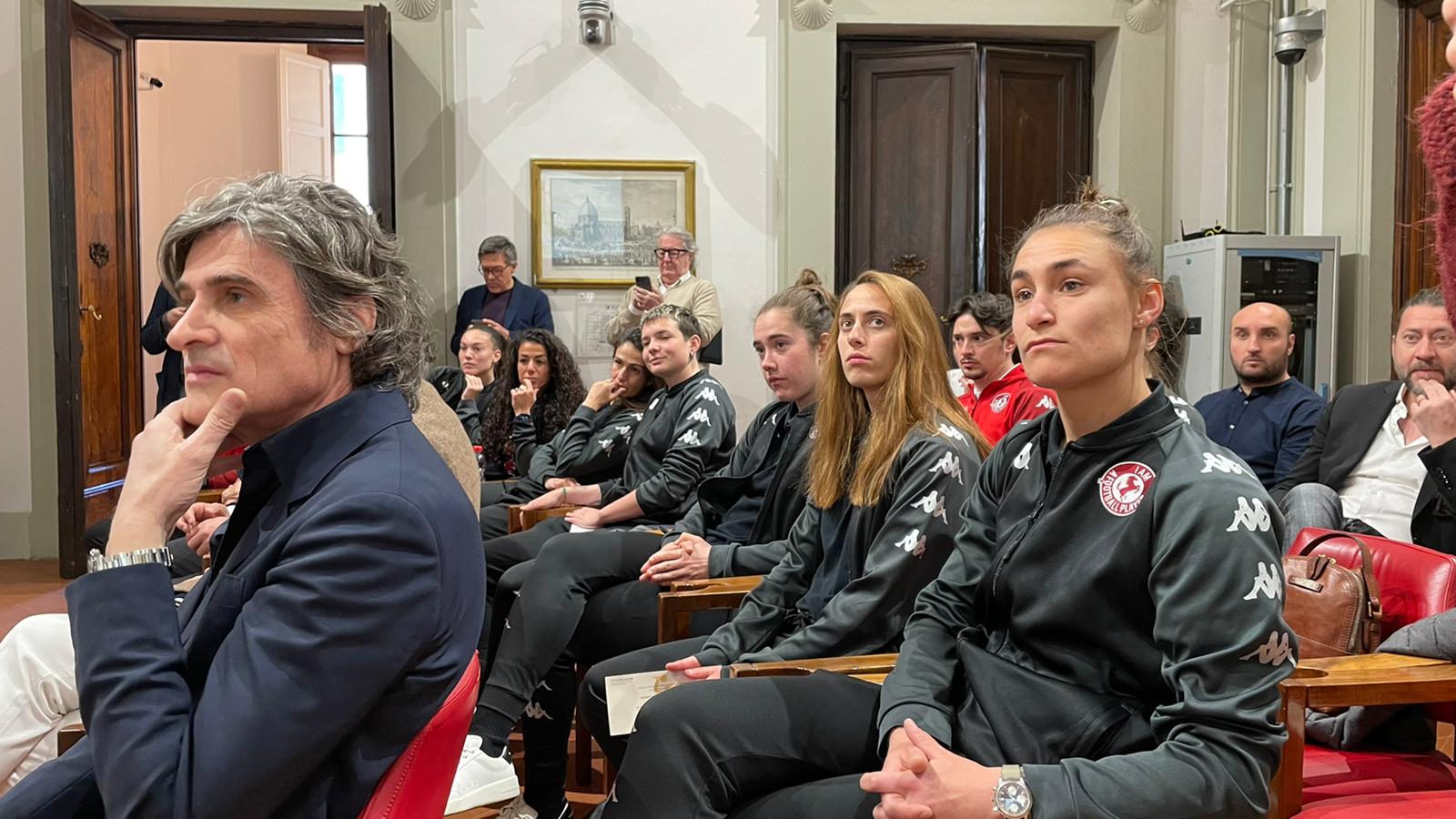 Con il vicepresidente del Consiglio regionale Marco Casucci e la consigliera regionale Lucia De Robertis ha partecipato alla premiazione anche la presidente della commissione regionale Pari opportunità Francesca Basanieri: “Un riconoscimento per il grande successo di queste atlete, un successo calcistico, però anche un successo personale, perché sono ragazze che hanno cominciato a fare calcio contro tutte e contro tutti, perché erano da sole, a giocare a pallone in squadre di tutti bambini e quindi la loro forza, la loro volontà di portare avanti una passione è di esempio per tutte le bambine. Non ci sono sport da uomini o da donne, lo sport è di tutti e questo riconoscimento è anche per la forza di volontà che hanno dimostrato nel perseguire i loro sogni. La vostra è una storia che vogliamo portare nelle scuole”.