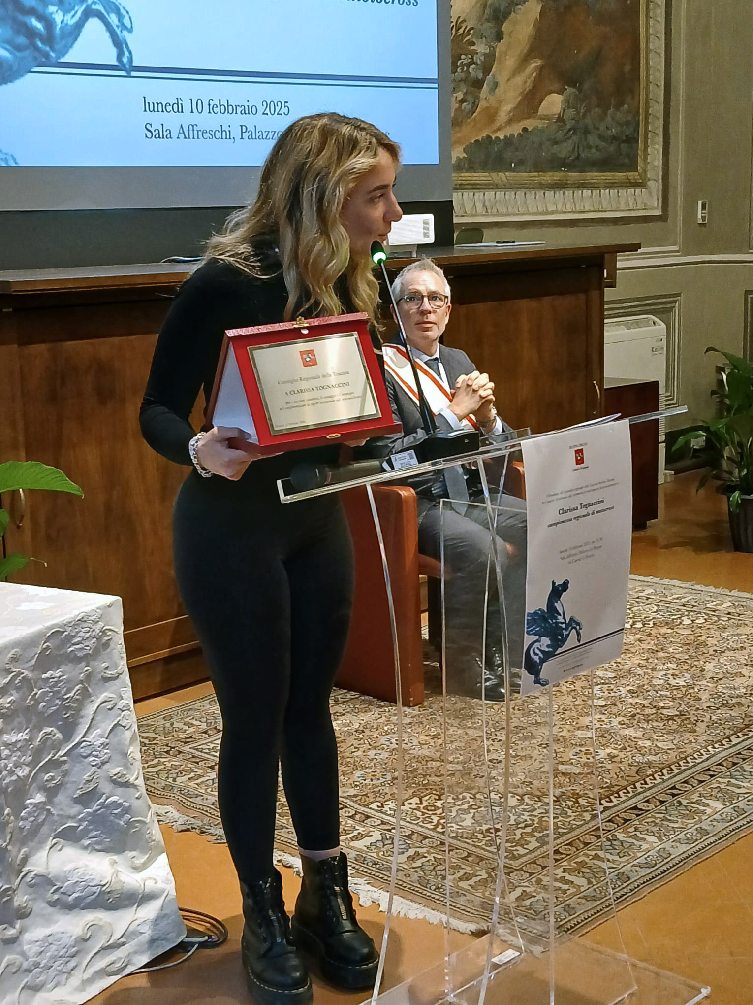 A proporre il premio all’Ufficio di presidenza la consigliera Elisa Tozzi: “Clarissa è l’esempio che si possono raggiungere grandi risultati con il sacrificio, in uno sport tradizionalmente maschile ed è inusuale pensare che una donna possa raggiungere questi traguardi così giovane. Oggi diamo un messaggio importante ai giovani e a tutte quelle ragazze che sono oggetto di uno stereotipo nel mondo dello sport. Questo deve essere motivo di orgoglio anche per la sua famiglia che ha sostenuto la sua passione. Come Regione Toscana dobbiamo premiare i migliori talenti del nostro territorio”.