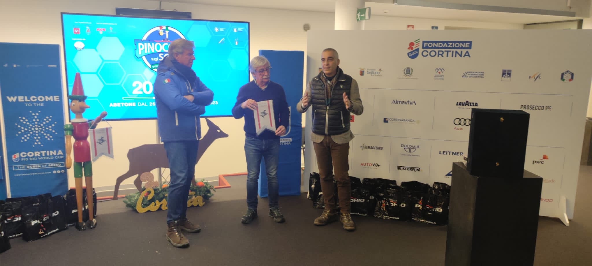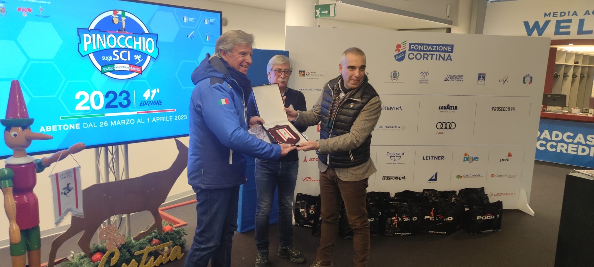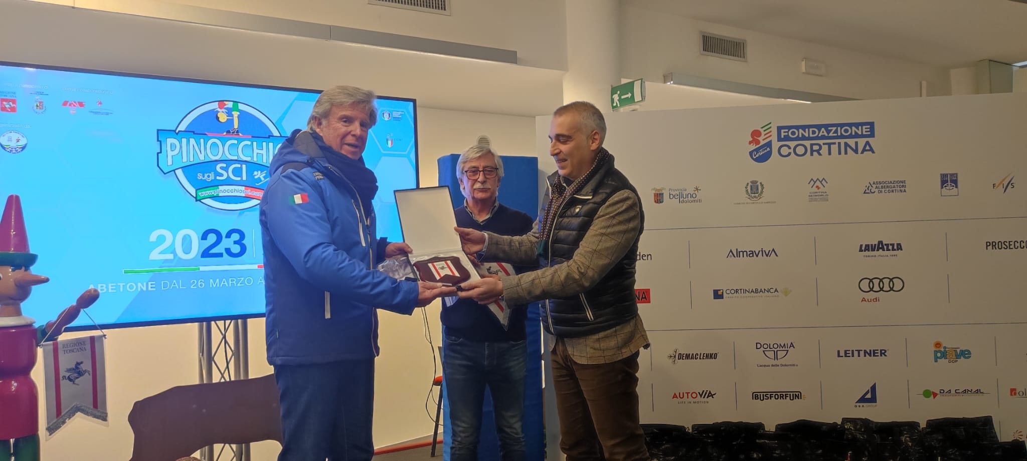 Nell’occasione il consigliere Petrucci ha consegnato il crest della Regione Toscana al presidente della Fondazione Cortina, Stefano Longo “come simbolo di amicizia e condivisione da parte del Consiglio regionale per il grande obiettivo delle Olimpiadi di Cortina 2026”. A Franco Giachini, patron del Pinocchio sugli sci, ha invece consegnato il gagliardetto della Regione Toscana “con l’impegno a sostenere questa straordinaria manifestazione”.