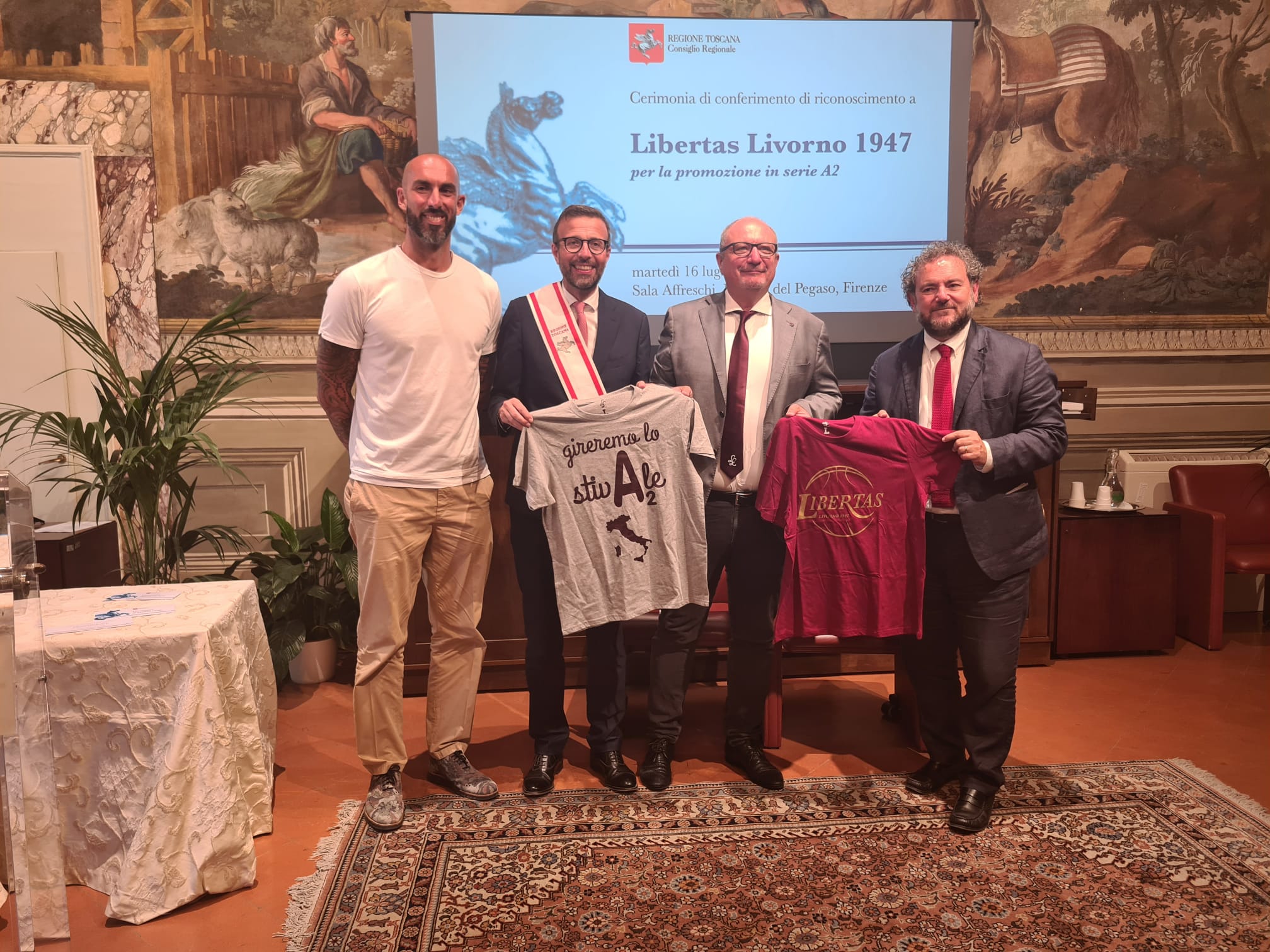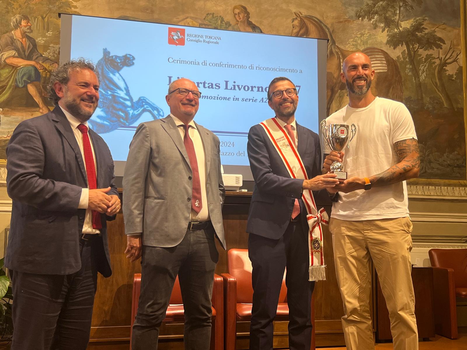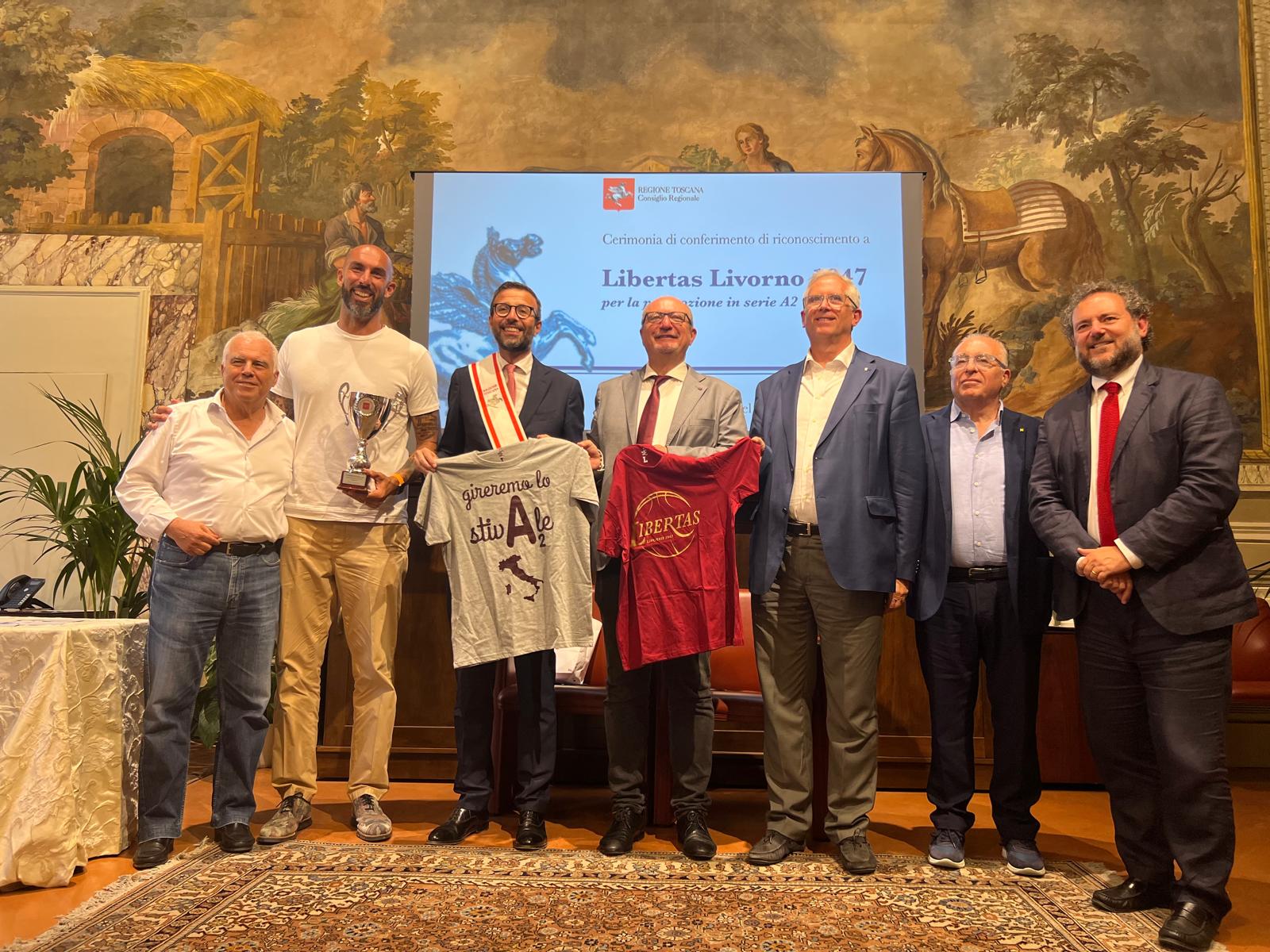 Per il presidente dell’Assemblea legislativa Antonio Mazzeo, che ha raccontato di essere un grande appassionato di pallacanestro “si tratta di un riconoscimento importante per la Libertas Livorno 1947 che dopo 33 anni torna in A2. Un riconoscimento per la società, per gli atleti, che hanno fatto un campionato stupendo, ma anche per il pubblico che ha sempre gremito il palazzetto dello sport. Il percorso che ha fatto questa squadra è la dimostrazione che il lavoro paga, che permette di affrontare e superare le difficoltà e di raggiungere gli obiettivi”.