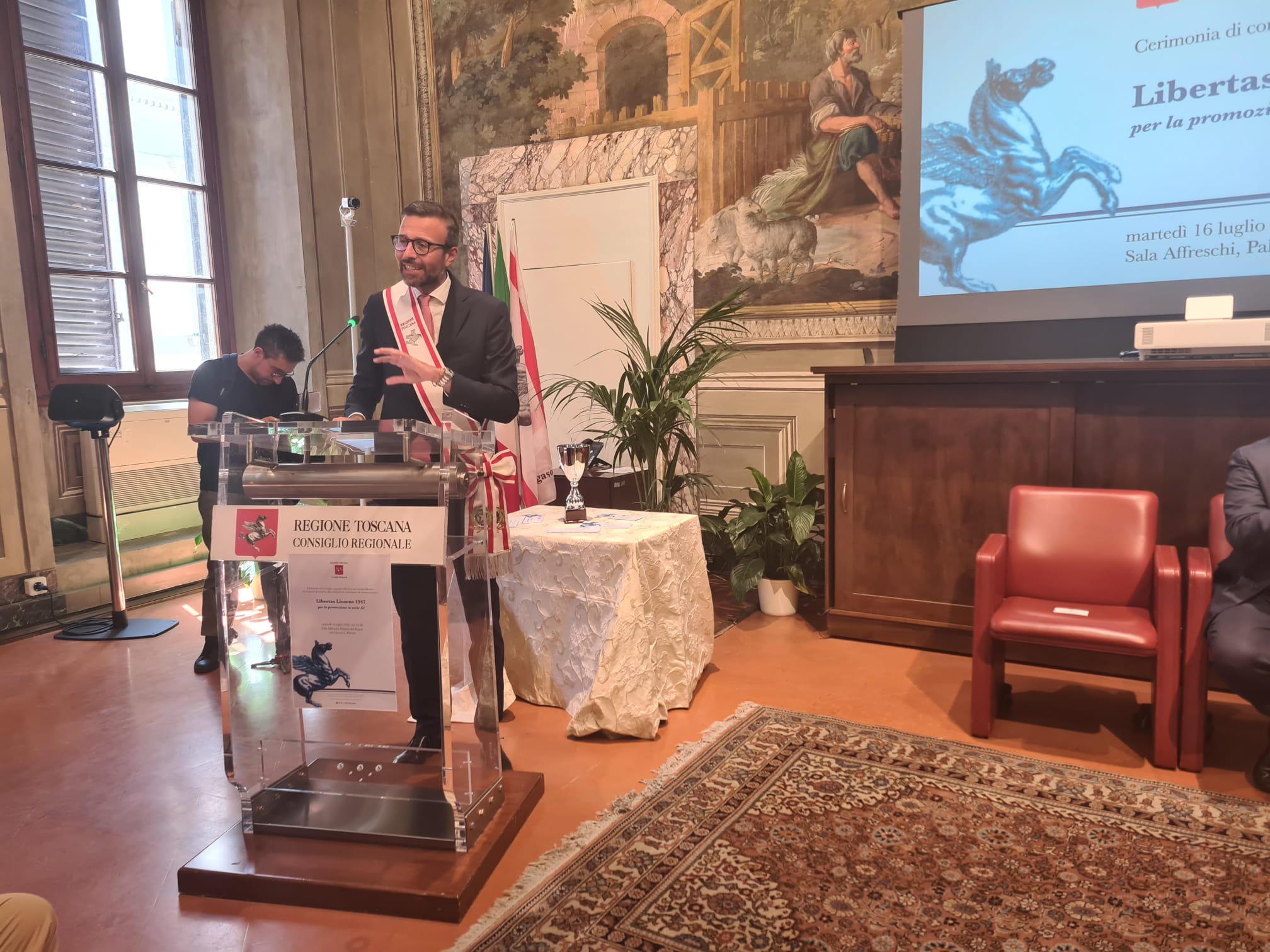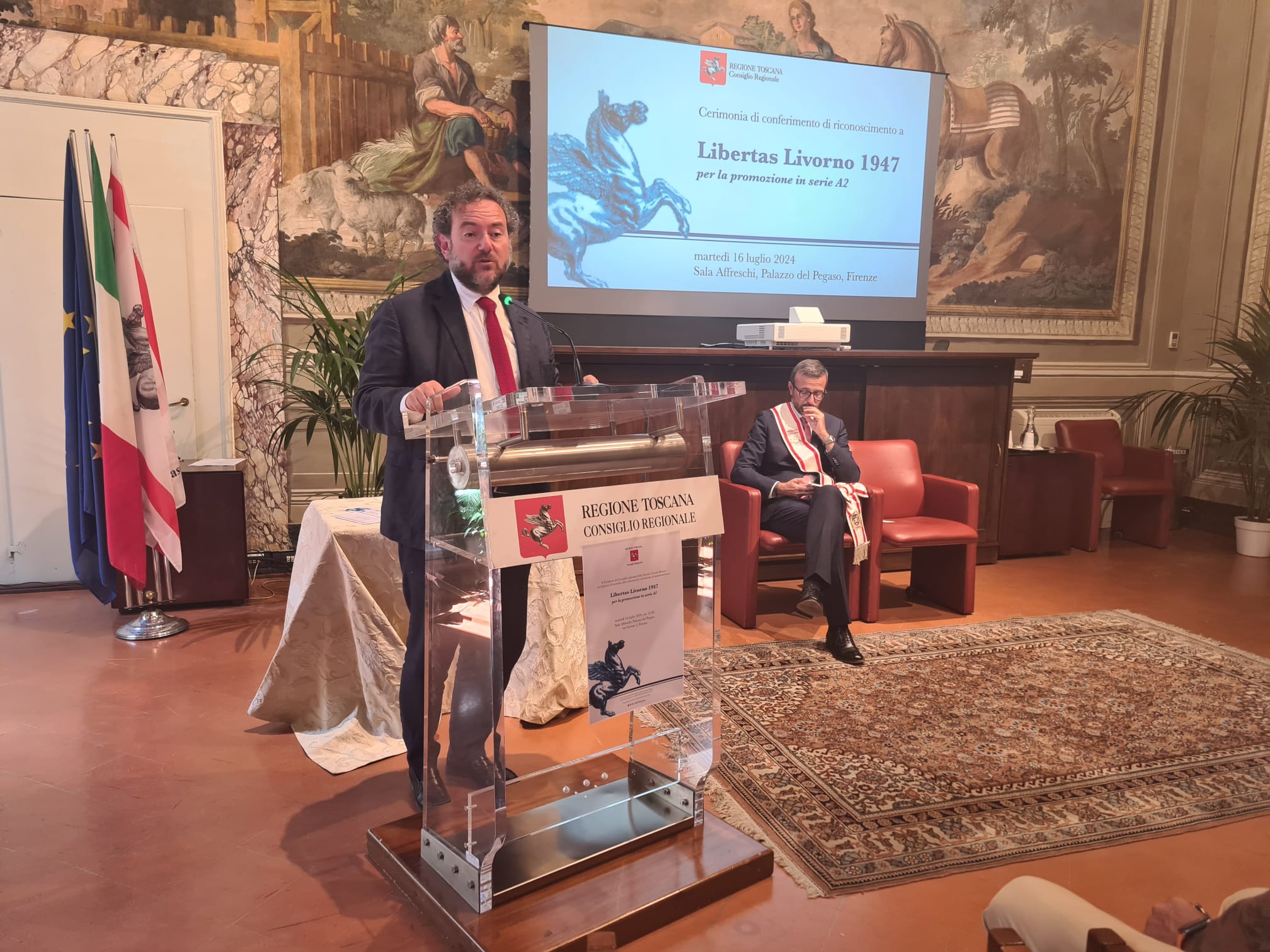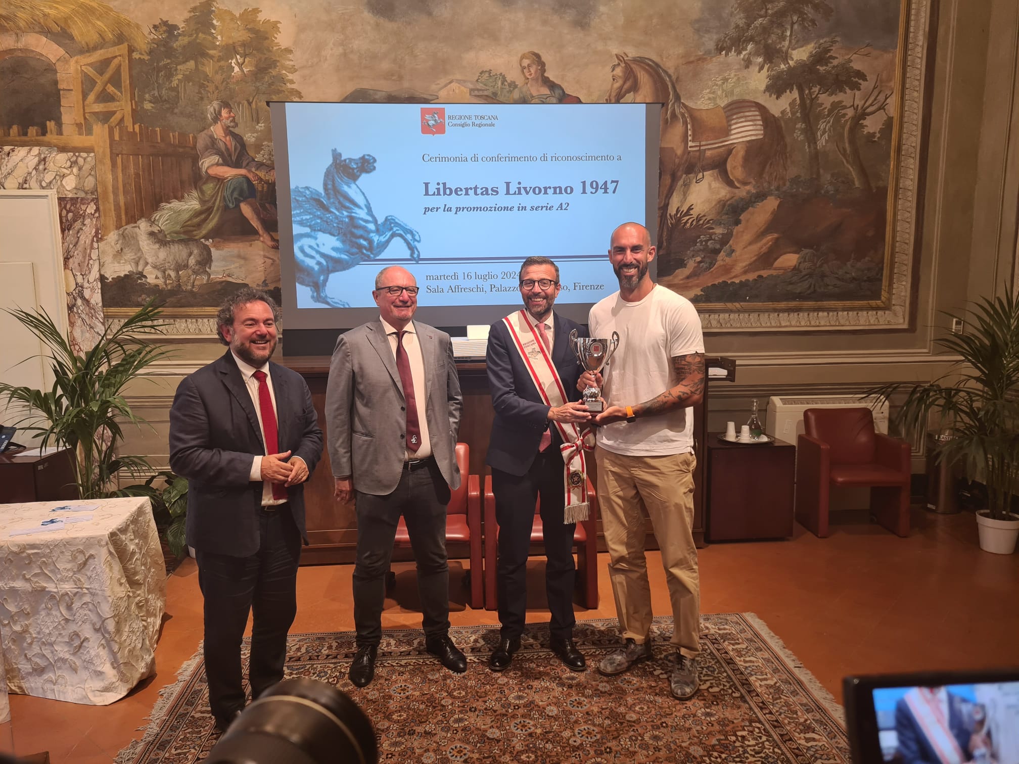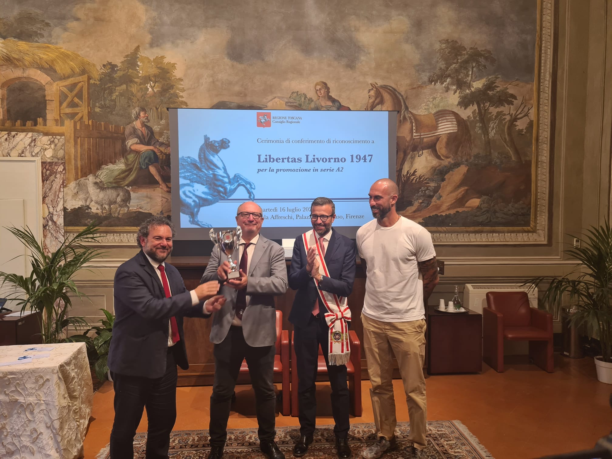 Per il presidente dell’Assemblea legislativa Antonio Mazzeo, che ha raccontato di essere un grande appassionato di pallacanestro “si tratta di un riconoscimento importante per la Libertas Livorno 1947 che dopo 33 anni torna in A2. Un riconoscimento per la società, per gli atleti, che hanno fatto un campionato stupendo, ma anche per il pubblico che ha sempre gremito il palazzetto dello sport. Il percorso che ha fatto questa squadra è la dimostrazione che il lavoro paga, che permette di affrontare e superare le difficoltà e di raggiungere gli obiettivi”.