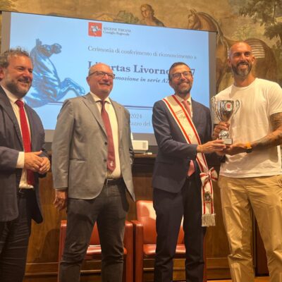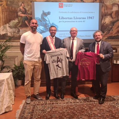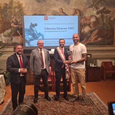 “Non ci sarà più il derby – ha concluso Mazzeo -, ma la Libertas Livorno 1947 rappresenterà ai massimi livelli il nostro territorio. Questo è un riconoscimento che insieme al presidente Gazzetti abbiamo voluto dare, per dire grazie a chi ha scommesso investendo su questo progetto e agli atleti per avere conquistato la promozione”.