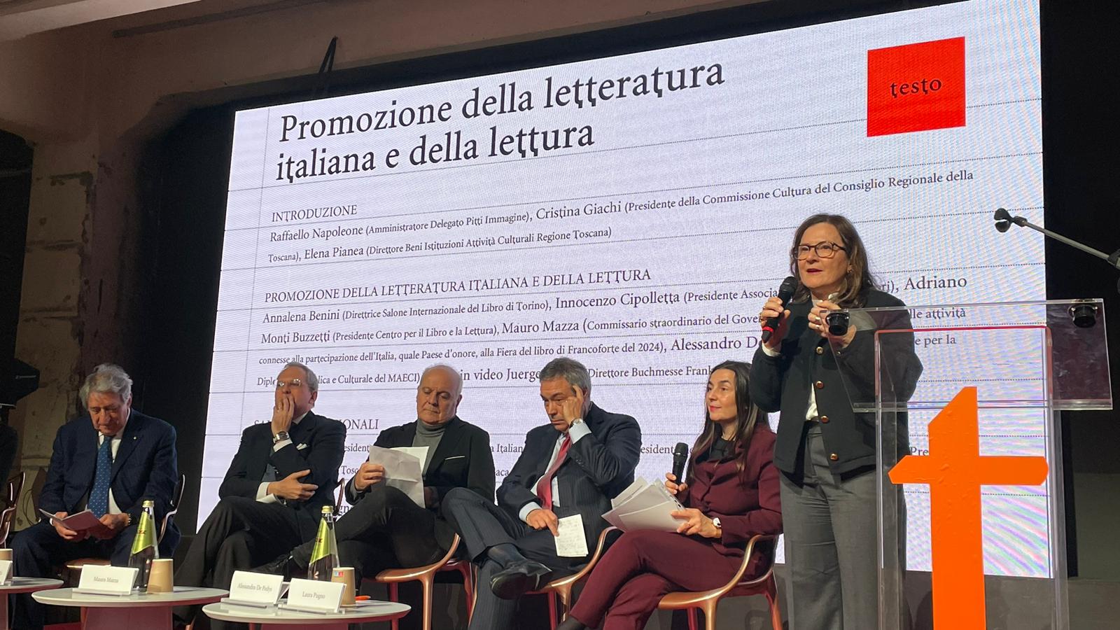 Firenze – “Abbiamo aperto la terza edizione di Testo con una bella iniziativa organizzata dalla Regione Toscana e dagli Stati Generali della Cultura. Abbiamo riflettuto su quale potrebbe essere il ruolo delle istituzioni nella promozione della letteratura e della lettura, in un contesto nazionale e internazionale”. È quanto dichiara Cristina Giachi, presidente della commissione istruzione, formazione, beni e attività culturali del Consiglio Regionale della Toscana, intervenendo all’iniziativa ‘Promozione della letteratura e della lettura’ che si è svolta a Testo, salone dell’editoria organizzato da Pitti Immagine alla Stazione Leopolda di Firenze, e alla quale hanno partecipato, tra gli altri, Raffaello Napoleone, amministratore delegato di Pitti Immagine, Elena Pianea, direttrice dei beni istituzioni attività culturali della Regione Toscana e Annalena Benini, direttrice del Salone internazionale del Libro di Torino. Erano presente anche Luciana Bartolini ed Elena Rosignoli, rispettivamente vicepresidente e vicepresidente segretario della Commissione cultura del Consiglio regionale.