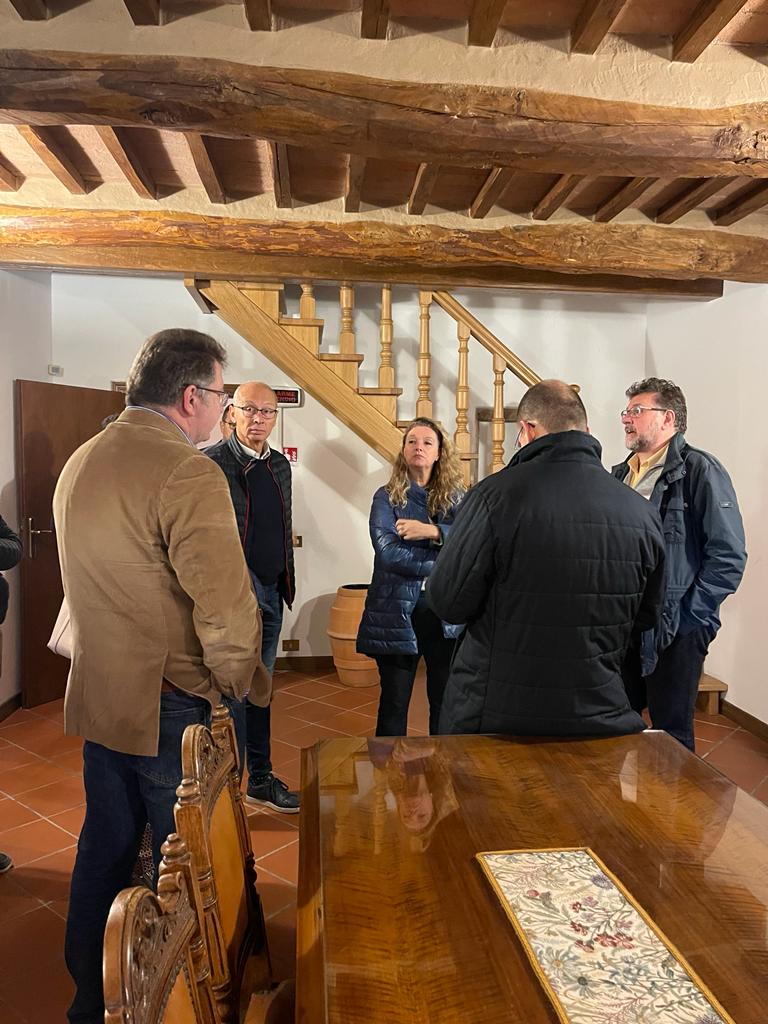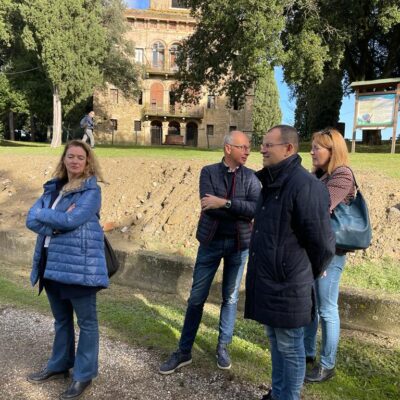 Una delegazione della commissione regionale Sviluppo economico e rurale guidata da Ilaria Bugetti (Pd), oggi, ha dedicato una giornata alla visita della tenuta: villa il Tinaio dove alloggiava il costruttore siciliano Vincenzo Piazza, Villa Santo Stefano con la sua cappellina, la zona del torrente della Sorra con l’allevamento di cinta senese.
