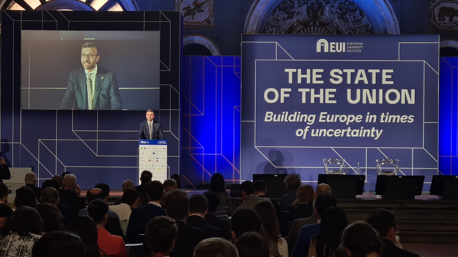 Firenze – Il presidente del Consiglio regionale Antonio Mazzeo ha aperto i lavori della sessione pomeridiana della 13esima conferenza ‘The State of the Union’, venerdì 5 maggio, nel salone dei Cinquecento a palazzo Vecchio. Un’occasione per parlare del presente e del futuro dell’Europa con i protagonisti. A margine dei lavori il presidente dell’Assemblea legislativa ha infatti incontrato il commissario europeo agli Affari economici e monetari Paolo Gentiloni e il ministro degli Affari esteri svedese Tobias Billström.