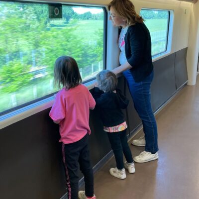 Molte donne, uomini, tanti giovani e diverse famiglie con bambini. La passeggera più giovane, Frida, due anni e mezzo, è sul treno con la mamma e il babbo e spera di trovare tanti libri da farsi leggere prima di addormentarsi.