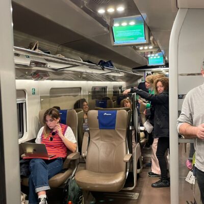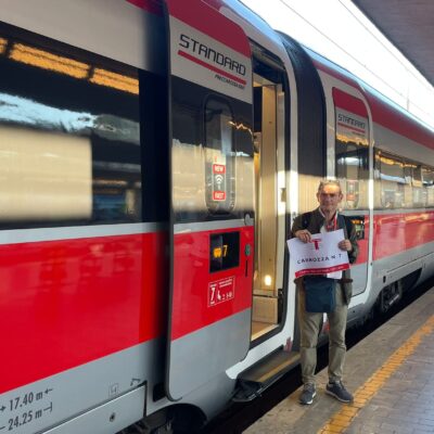 “E’ emozionante – dice Massimo, lettore esperto – A me che piace tanto viaggiare, essere su questo treno diretto al Salone del libro, che regala a sua volta viaggi attraverso le pagine, è un’esperienza e una fortuna, perché tra l’altro ho avuto la possibilità di partecipare a un’iniziativa unica, la prima, in Italia”.