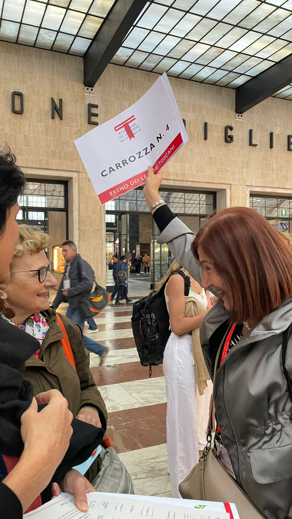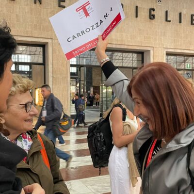 Alle 9 prende il via l’animazione, una “radio dei lettori toscani” che dai microfoni nei vagoni, dopo i saluti istituzionali, diffonde la voce di Gabriele Ametrano, presidente dell’Associazione Wimbledon Aps che intervista le scrittrici toscane del progetto ‘La Toscana delle donne’: Silena Santoni, Denata Ndreca e, con loro, Stefania Costa, presidente dell’associazione ‘La Nottola di Minerva’ e ideatrice del progetto ‘Animae loci”.