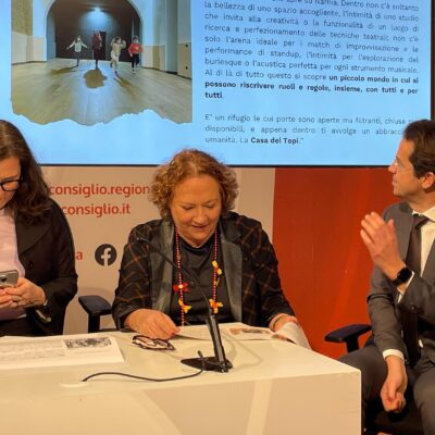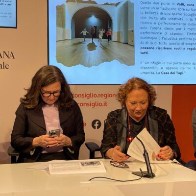 Nella conferenza stampa sono stati presentati laboratori, progetti di formazione, produzioni, workshop. Sono intervenuti il vicepresidente dell’Assemblea toscana, Stefano Scaramelli; i presidenti di commissione Cristina Giachi ed Enrico Sostegni; la consigliera regionale Donatella Spadi; la presidente e la vicepresidente dell’associazione, rispettivamente Margherita Fusi e Silvia Bruni, insieme al consigliere Alberto Massi. Erano presenti le consigliere regionali Elena Rosignoli ed Anna Paris. L’associazione Topi Dalmata, che nasce a Siena nel 2010, intende accompagnare lo spettatore, sia piccolo che grande, a forme di esperienze artistiche accessibili, condivise e originali.